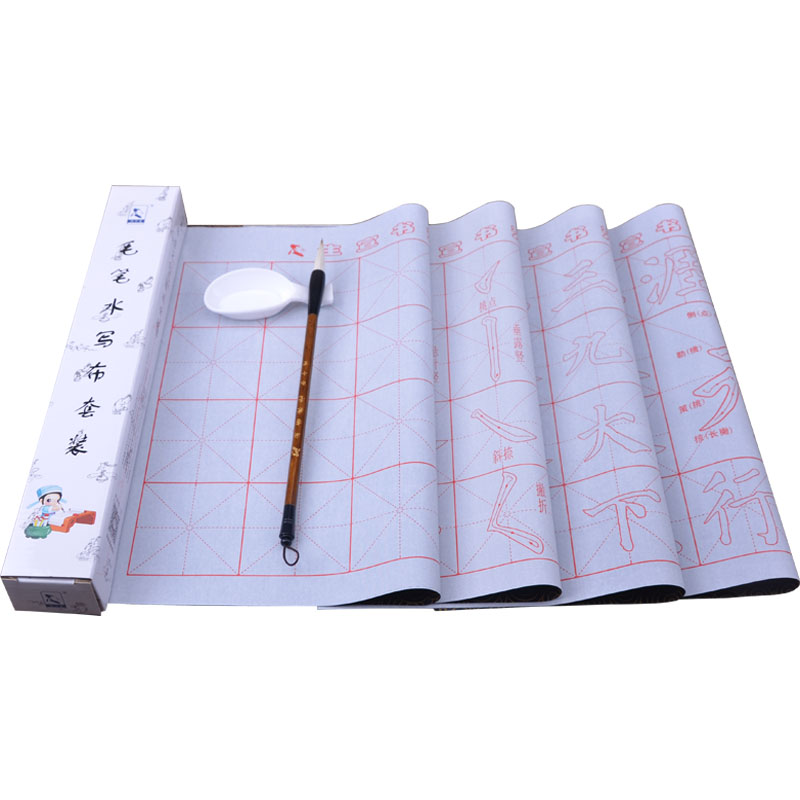 Water writing cloth is a kind of cloth.Use calligraphy brushes dipped in water and write on the its surface,then it immediately shows characters like write with black ink on paper. Water writing cloth can be rewritten more than thousand times after drying,unless it’s damaged.It can be used for calligraphy practise,painting, children graffiti and other art supplies.